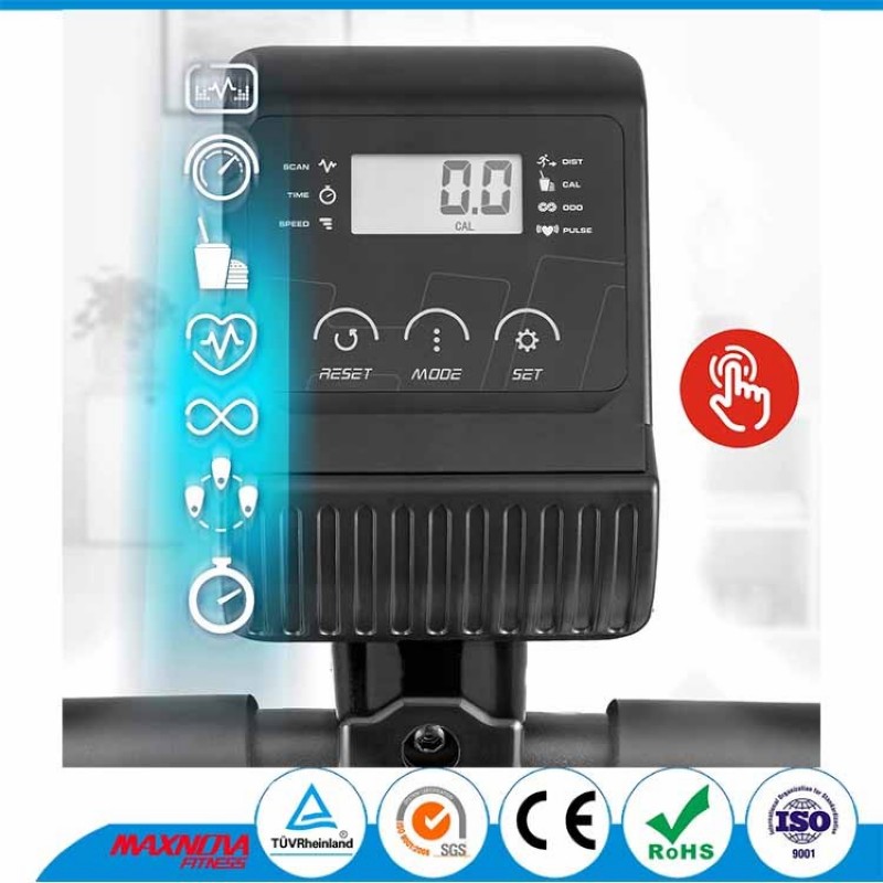 Compared to standard felt friction resistance, this machine features a magnetic resistance flywheel that delivers a smooth and silent operation, with no need to replace friction pads.